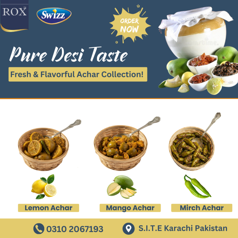 ROX Food’s mixed pickle has aroma, perfect spices, and crunchy bites. It enhances every dish, especially biryani and daal chawal. Once you try it, you will want more at meals.